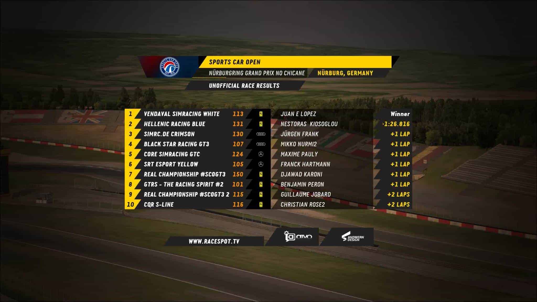 Congratulations to Thrustmaster Mivano Racing, Vendaval Simracing Blue and Vendaval Simracing White for their win in the each category, and to all participants for the exciting first event, especially to simrc.de for the clean and fair fight for many laps! Also to organizers for a good start in their new adventure.